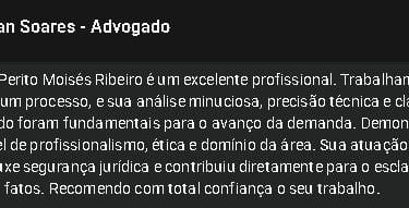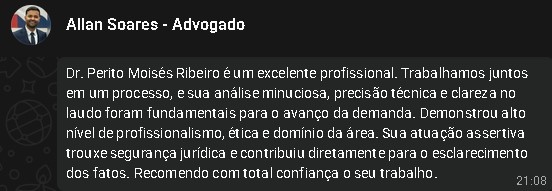 Olá, meu nome é Moisés Ribeiro e atualmente Perito Judicial especializado em fornecer avaliações técnicas com o objetivo de gerar provas que podem, por exemplo, ajudar uma das partes a demonstrar para o juiz que há razão no seu pedido ou permitir que a parte acusada seja eximida de responsabilidades dentro das minhas áreas de atuações: